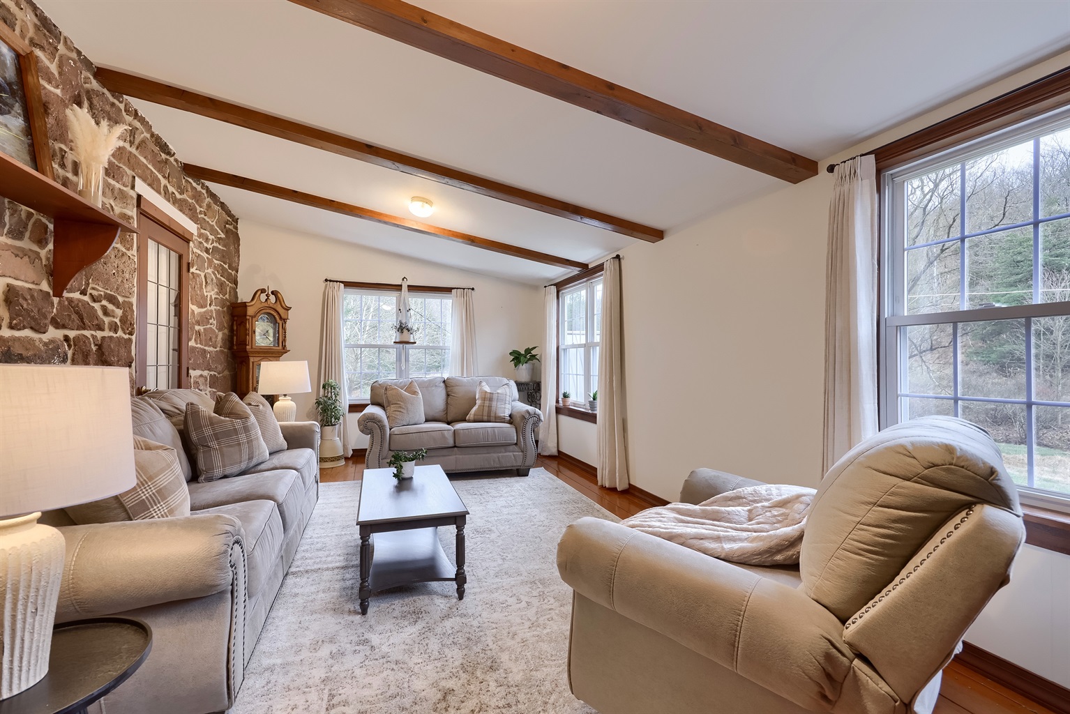 5 Bedrooms • 2 Bathrooms 2 Baths • Sleeps 1-9Welcome to this beautifully preserved 4-bedroom, 2-bath stone farmhouse +1-bedroom Summer Kitchen tucked along the quiet countryside of Mohnton. Cedar Glen Farmhouse was built in the 1800s and full of original interior stonework, this home offers the charm of a historic farmhouse with the comfort travelers appreciate today. Guests love the peaceful setting, spacious layout, and the unique experience of staying in a true Pennsylvania stone home.