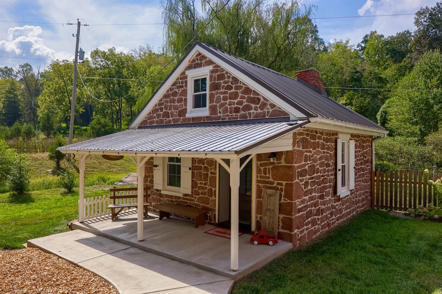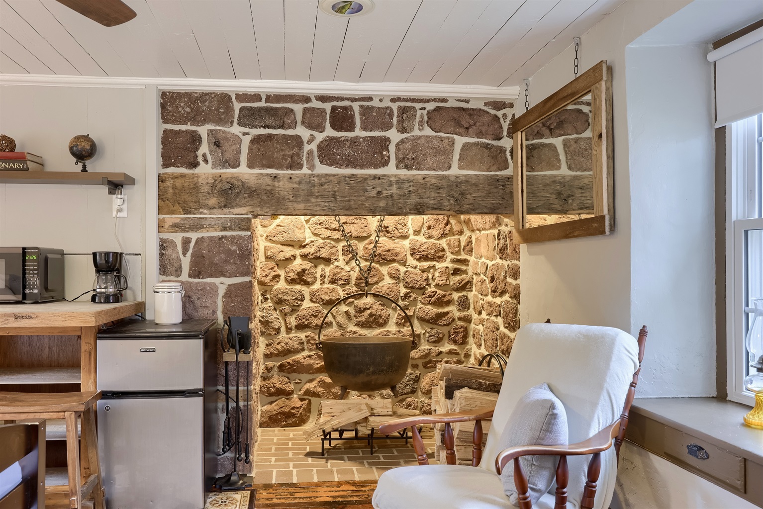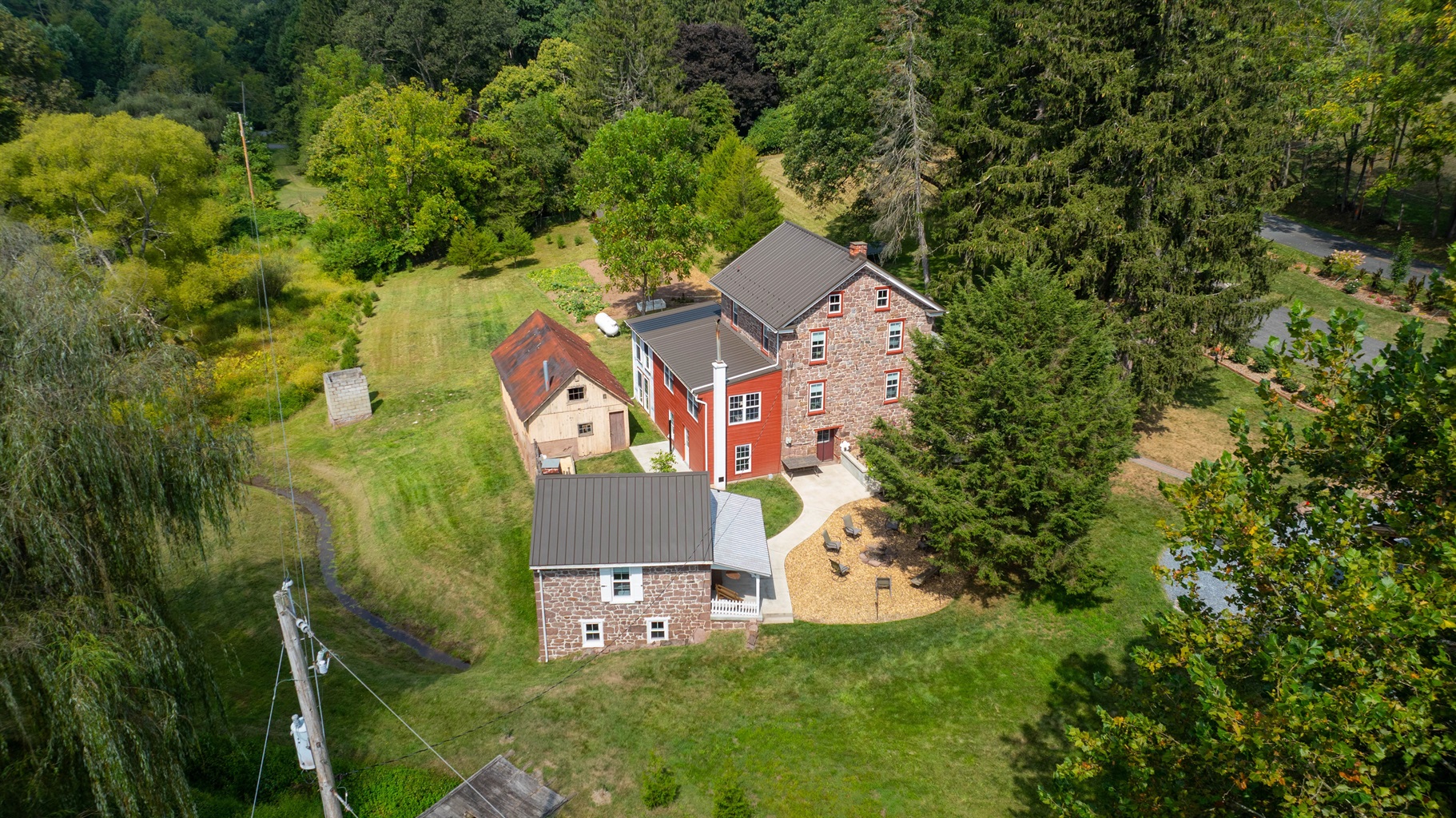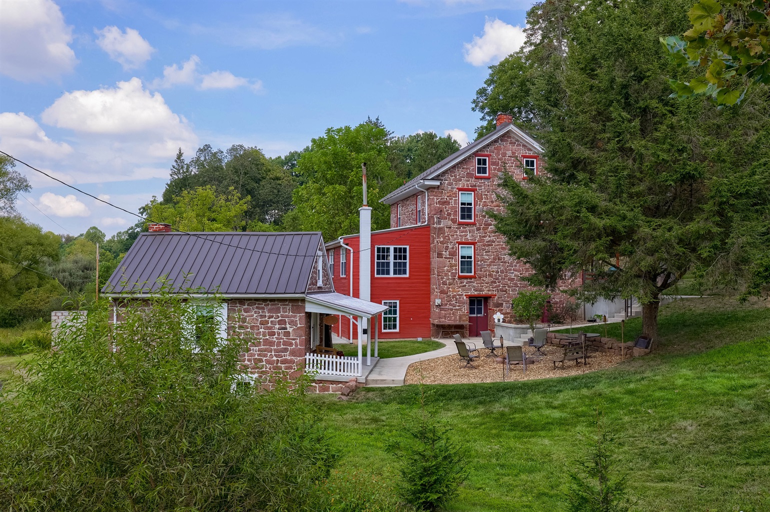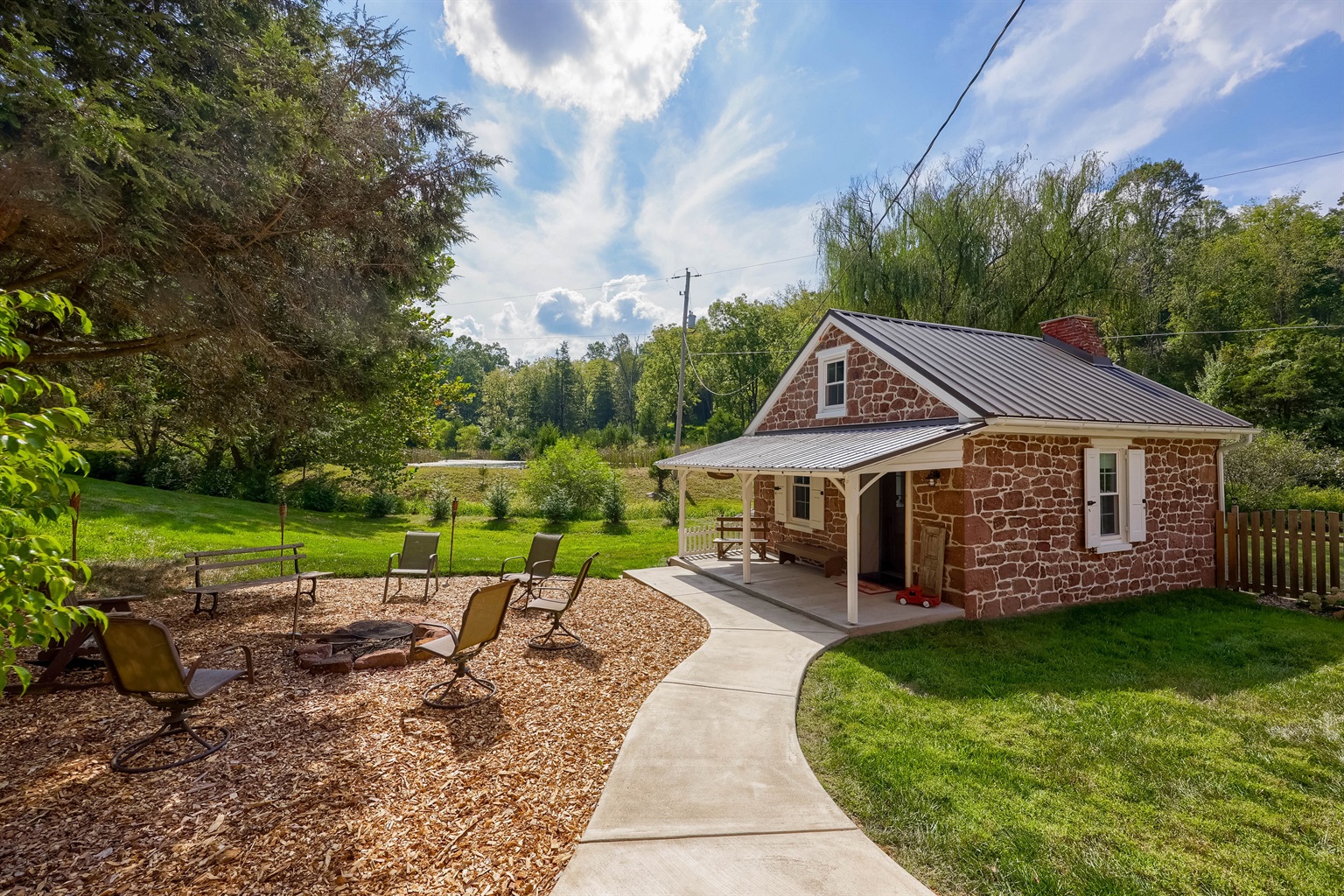 Whether you’re sipping coffee on the porch, relaxing in the warm stone rooms, enjoying a quiet retreat in the summer kitchen, or ending the evening by the fire pit, this home is made for slowing down and enjoying the countryside.