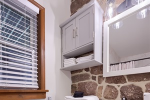 Please note: there is no bathroom in the summer kitchen, so guests staying there will use the bathrooms in the main house a few steps away.